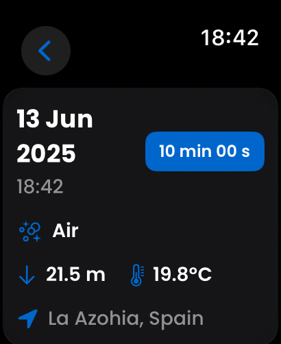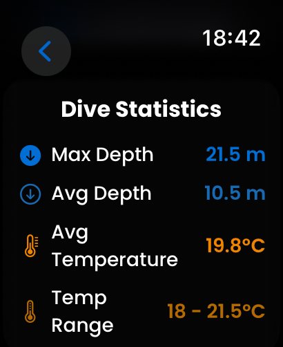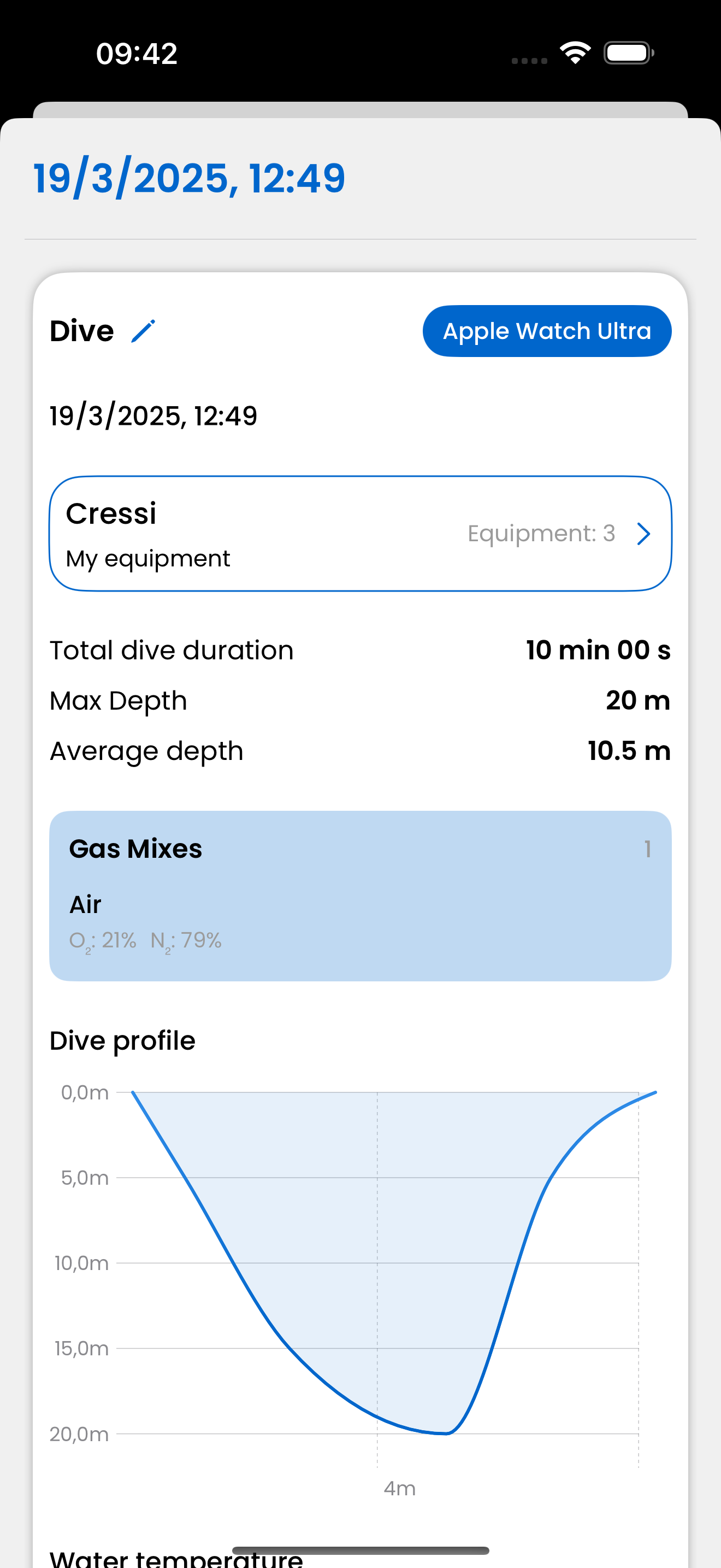 Log your dives with key data like duration, max depth, temperature, and charts.