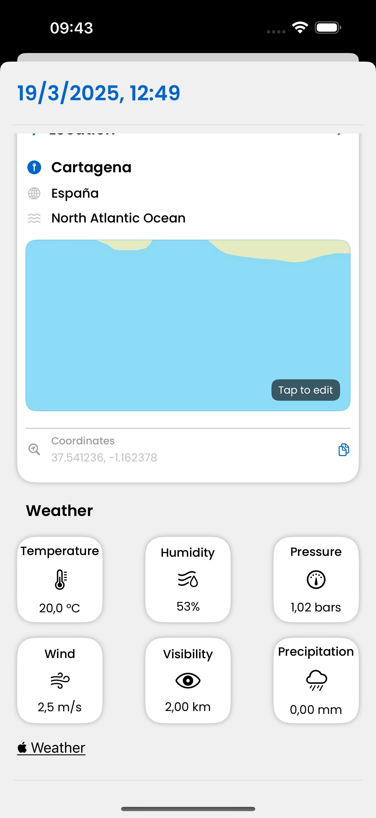 Add locations to your dives manually or at the time of planning (no background tracking).