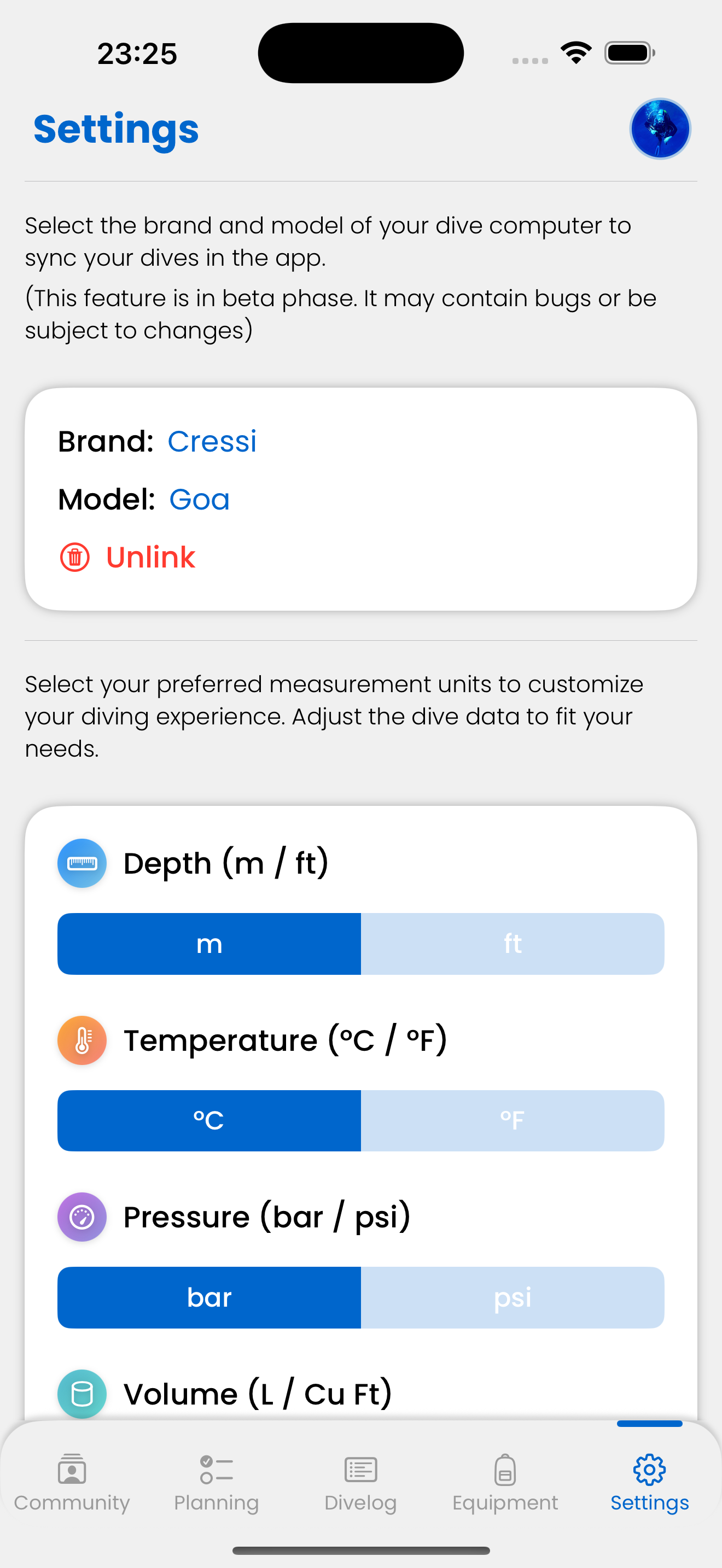 Import your dives from dive computers by brands like CRESSI, MARES, SUUNTO, and more.